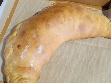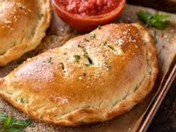 Our Calzone is stuffed with mozzarella, ricotta & parmesan, then baked to a golden brown. Served with a side of marinara for dipping, charging extra topping