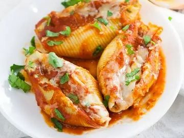 Classic ricotta stuffed shells with flavorful three-cheese ricotta filling and delicious marinara sauce
