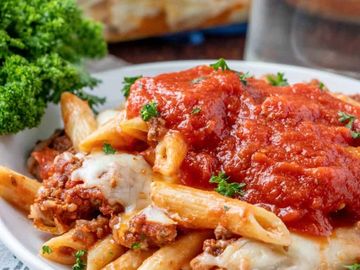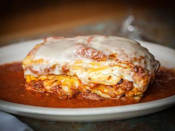 Baked Lasagna Pasta with Prime Choice Ground Beef, Ricotta, Homemade Tomato Sauce and Mozzarella Cheese.