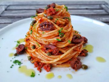 Cooked with Fresh Little Necks Clams in Garlic & Extra Virgin Olive Oil. ( red sauce )