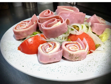 Ham, Cheese.Capicola, salami, tomato, lettuce, Tomatoes, Onion, Black Olive and Oil & Vinaigrette