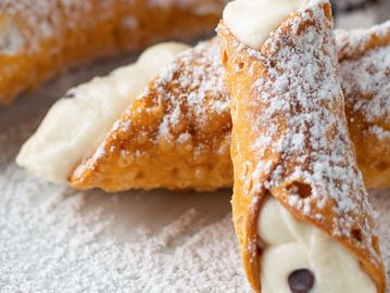 Small Chocolate Covered Cannoli Shells with Ricotta Filling with, Chocolate Chips
