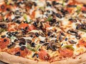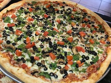 Mushrooms, onions, green peppers, black olives & tomatoes , Ricotta Cheese